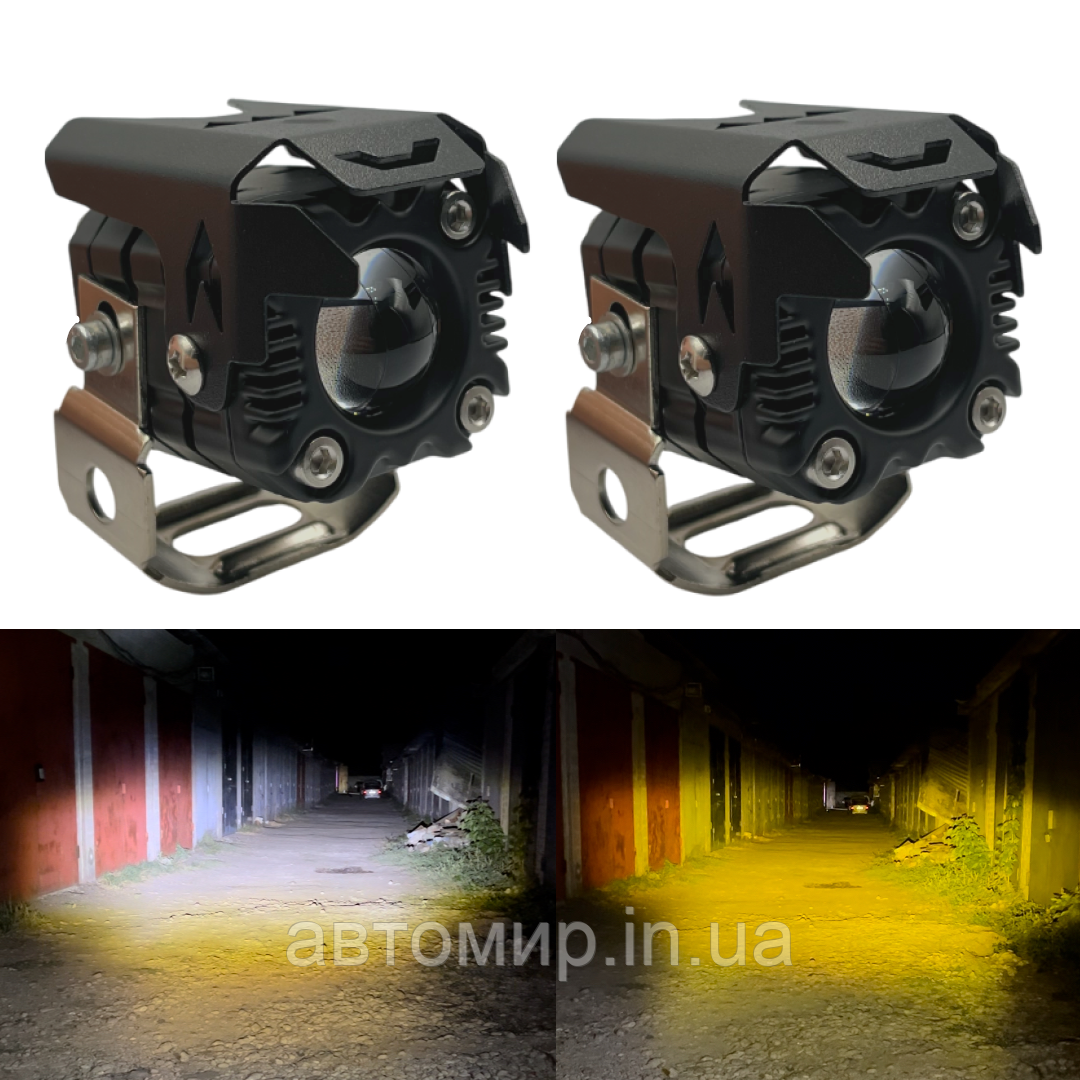 Led додаткова Mini фара/лінза на авто, мотоцикл, мопед, з функцією білого та жовтого кольору R22 40W (2шт)